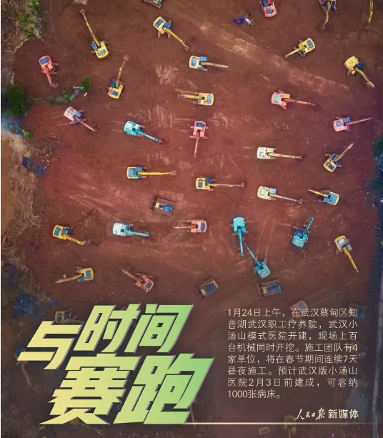 從1月23日宣布“武漢決定建設(shè)一座‘小湯山’,阻擊肺炎疫情蔓延”到醫(yī)院建成,用時(shí)整十天。