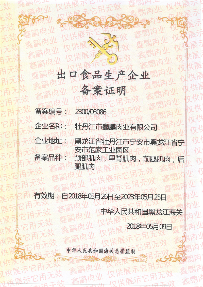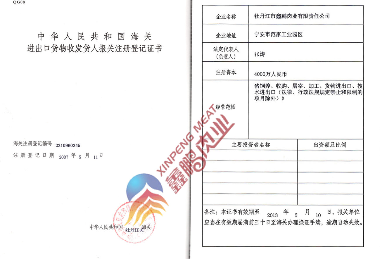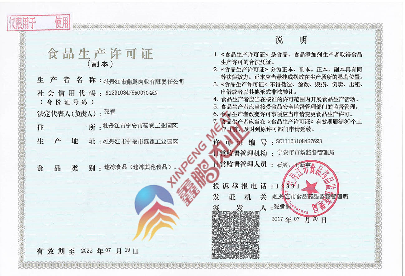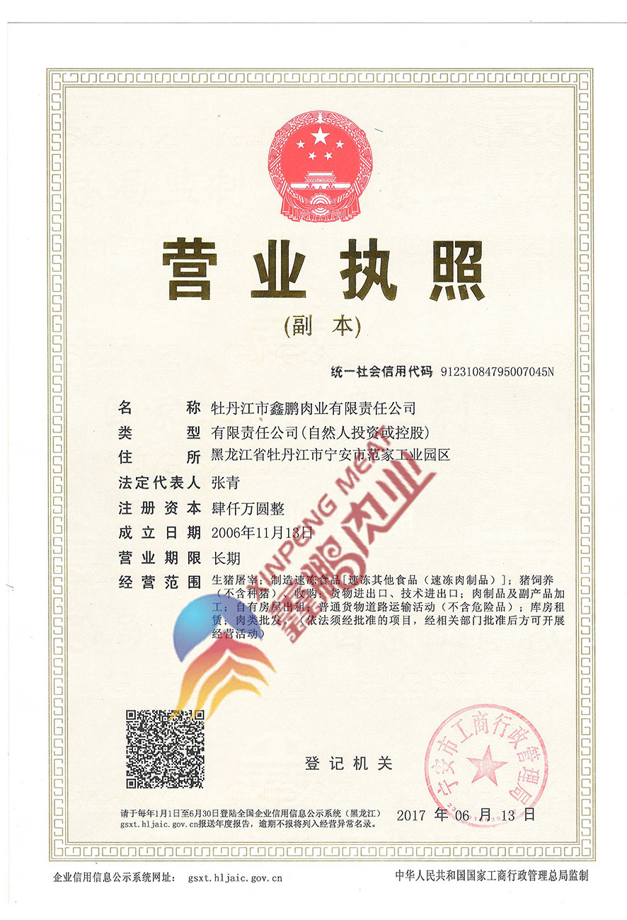 牡丹江市鑫鵬肉業(yè)有限責任公司
